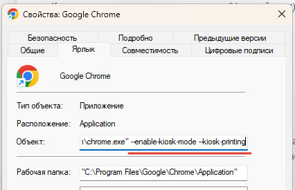 Настройки безопасности браузера таковы, что при нажатии кнопки печати сначала всегда появляется окно выбора принтера, даже если в системе установлен всего один принтер. Если вы печатаете много документов или ценников, вам может быть удобным настроить печать сразу на принтер, без вывода подтверждающего окна. Для этого нужно изменить настройки браузера: